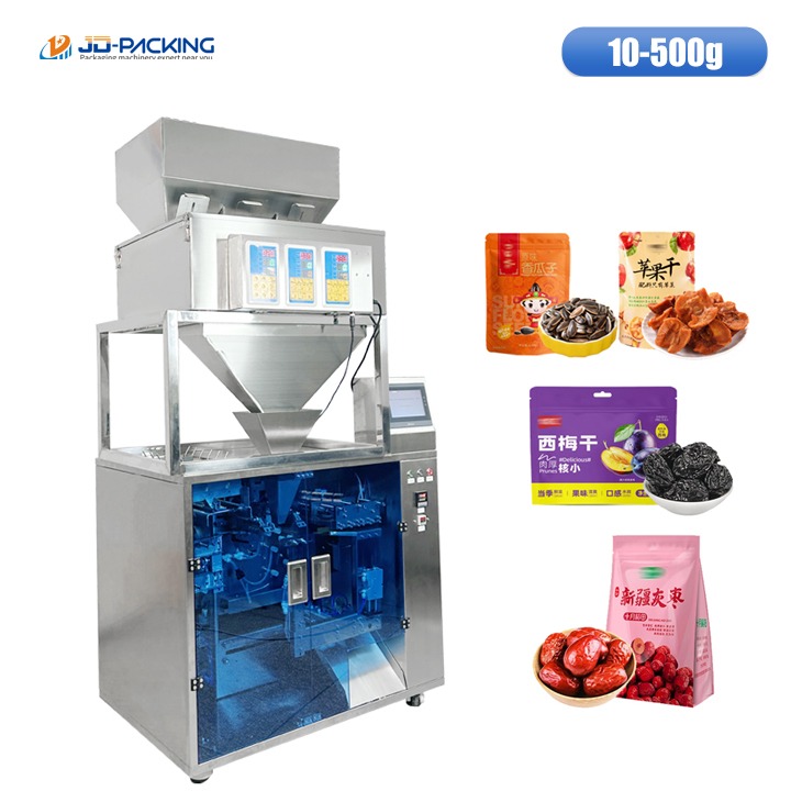 捷鼎的颗粒给袋式包装机,适用于各种颗粒类产品,比如坚果、五谷杂粮、果干、宠物食品等,各种预制袋都可以使用立式袋、立式拉链袋、平口袋、八边封袋、风琴袋等