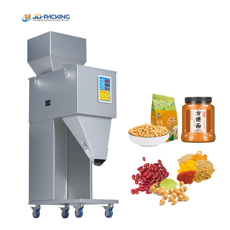捷鼎生产的量灌装机适用于茶叶花茶、红茶绿茶、干货特产、五金饰品、电子元器件、螺丝螺母、五谷杂粮、水果蔬菜、速冻水饺丸子、猫粮狗粮、化肥饲料、中药材、红枣枸杞、薯条薯片、爆米花、坚果瓜子、玉米种子、咖啡豆、咖啡粉、面粉、胡椒粉、调味粉等颗粒、粉末、条形状、不规则物料等的定量、称重、灌装