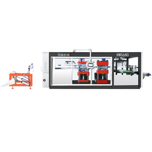 正负压工位热成型一体机 主要适用于HIPS,PS,PVC,PET,PP,PLA,玉米淀粉材料等塑 料片材成型,生产各种盒,托盘快餐盒,盘,盖,饼干托盘, 手机托盘及其他吸塑包装。