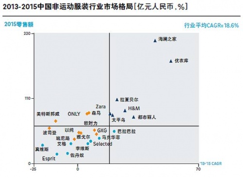 由于对时尚趋势把握不足、产品研发能力薄弱等问题,一些昔日龙头企业逐渐丢失快速变化的市场份额,被坚持以设计为核心并快速反应消费者需求变化的快时尚品牌,及以提供基本款但以高质面料、精湛工艺取胜的品牌所取代。